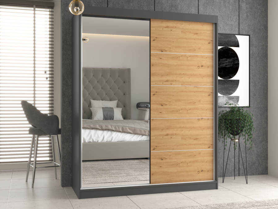 Szafa IGA 160 A/C ANTRACYT ARTISAN 1 x Lustro Szprosy Do Sypialni Przedpokoju