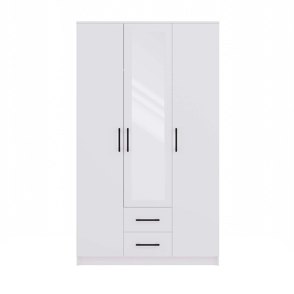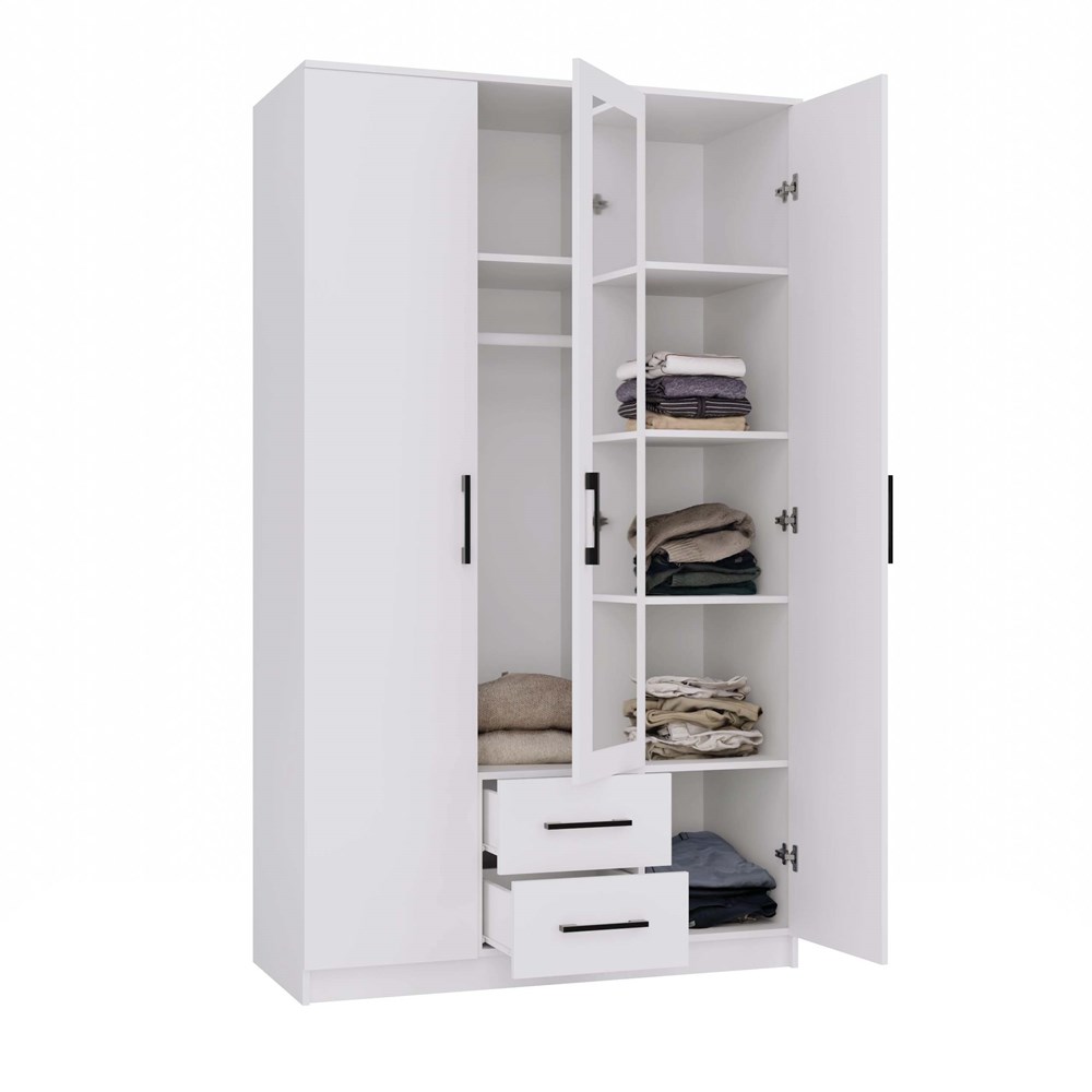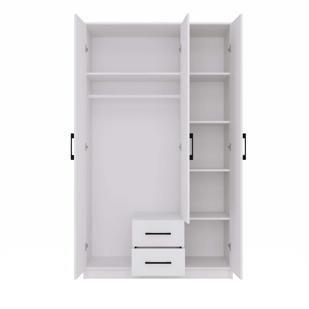 - 3-drzwiowa konstrukcja z podziałem na funkcjonalne strefy: przestrzeń na wieszaki, pojemne półki oraz praktyczne szuflady.