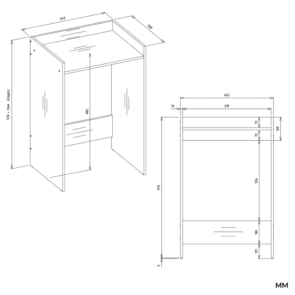 - Mebel wykonany jest z płyty laminowanej 16 mm.