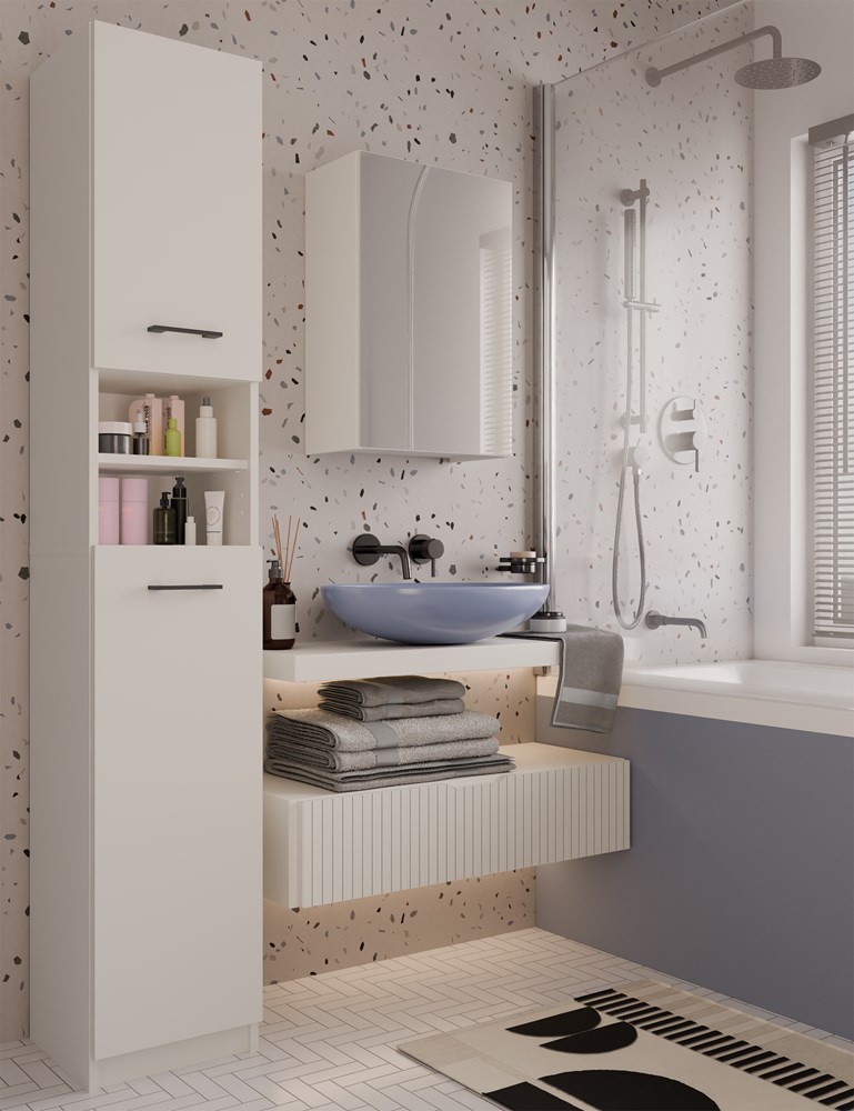 Wisząca szafka łazienkowa nad umywalkę to idealne rozwiązanie dla małych powierzchni aby jeszcze lepiej zagospodarować Twoją łazienkę. Przestronna szafka łazienkowa na ręczniki, kosmetyki, środki czystości i inne akcesoria łazienkowe.