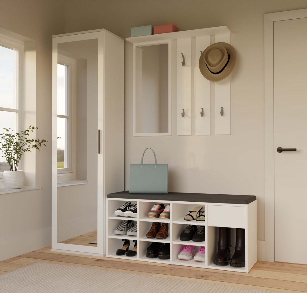 Praktyczna szafka do przedpokoju z miejscem do siedzenia