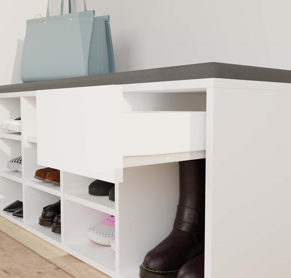 OTWARTA SZAFKA NA BUTY Z SIEDZISKIEM I SZUFLADĄ