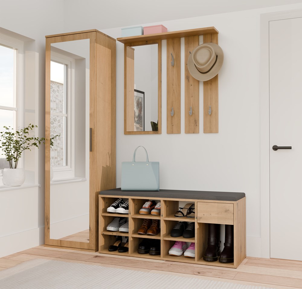 Praktyczna szafka do przedpokoju z miejscem do siedzenia