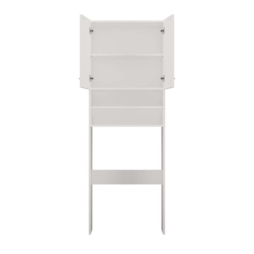 - Szafka posiada 2 półki schowane za drzwiczkami oraz 2 półki odsłonięte