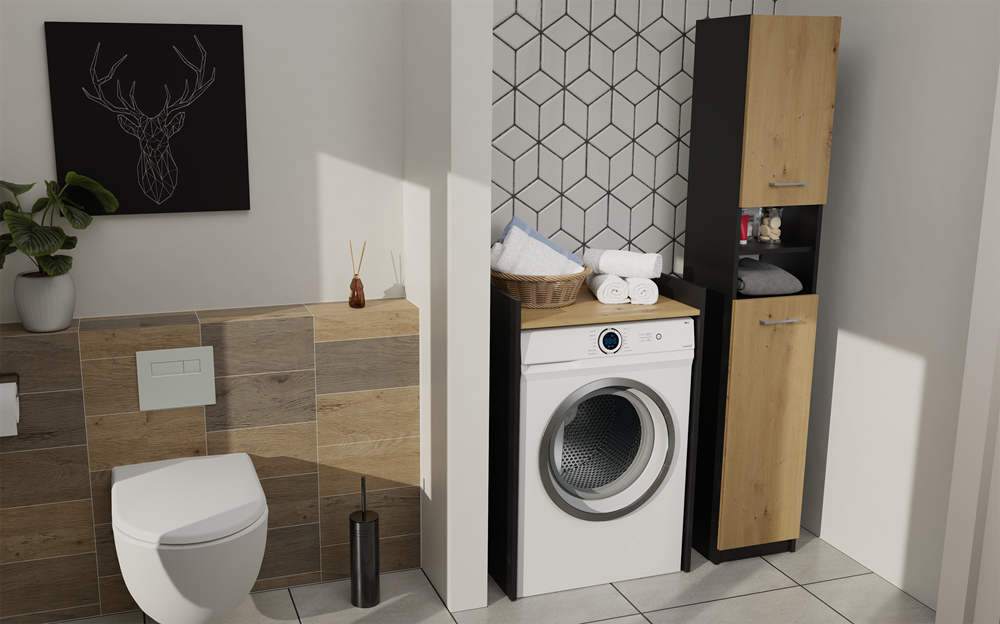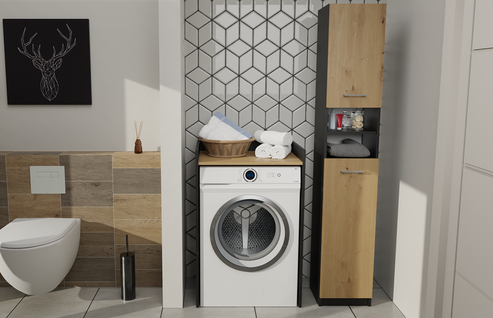 Stojąca szafka łazienkowa nakładana na pralkę to idealne rozwiązanie dla małych powierzchni aby jeszcze lepiej zagospodarować Twoją łazienkę. Przestronna szafka łazienkowa na której położysz ręczniki, kosmetyki i inne akcesoria łazienkowe.
