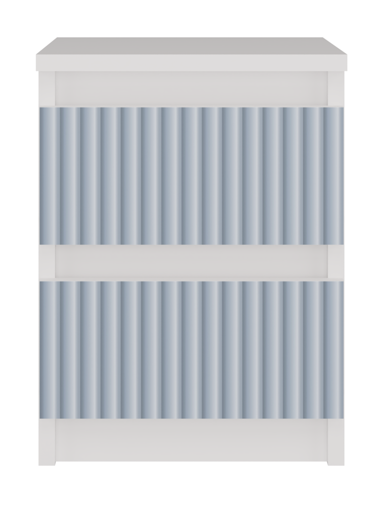- Front szuflad – Pionowe wzory w kolorze niebieskim nadrukowane w nowoczesnej technologii