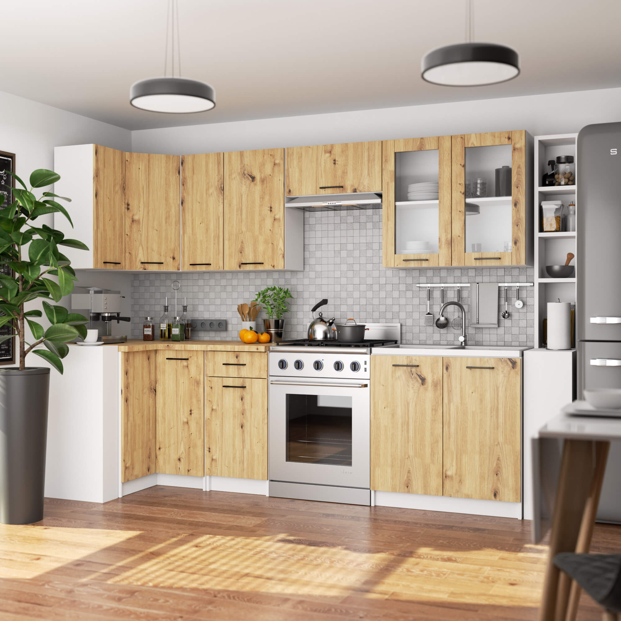 Każdy marzy o tym, aby swoją kuchnię urządzić w sposób efektowny, ale przede wszystkim praktyczny. Wybierając dobre jakościowo, solidnie wykonane meble, mają Państwo pewność ich trwałości, a co za tym idzie – możliwości użytkowania w niezmienionym stanie przez długie lata. Mamy przyjemność zaprezentować naszym klientom jedną z takich propozycji – szafkę kuchenną wiszącą witrynę W80 D2 H720 OLIWIA. To propozycja pochodząca z zestawu, w którym znajdą Państwo wiele innych mebli kuchennych idealnie ze sobą współgrających. Dzięki temu z pewnością uda się stworzyć nowoczesne i funkcjonalne pomieszczenie na miarę nawet największych potrzeb.