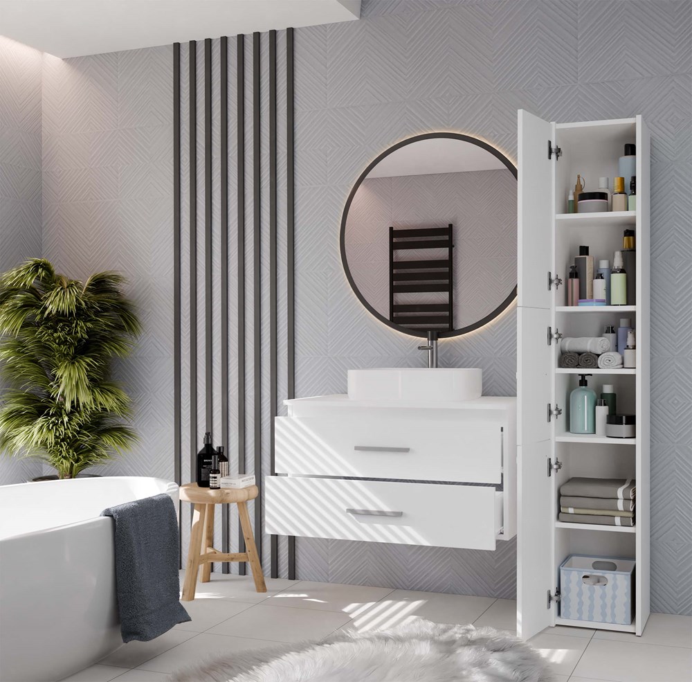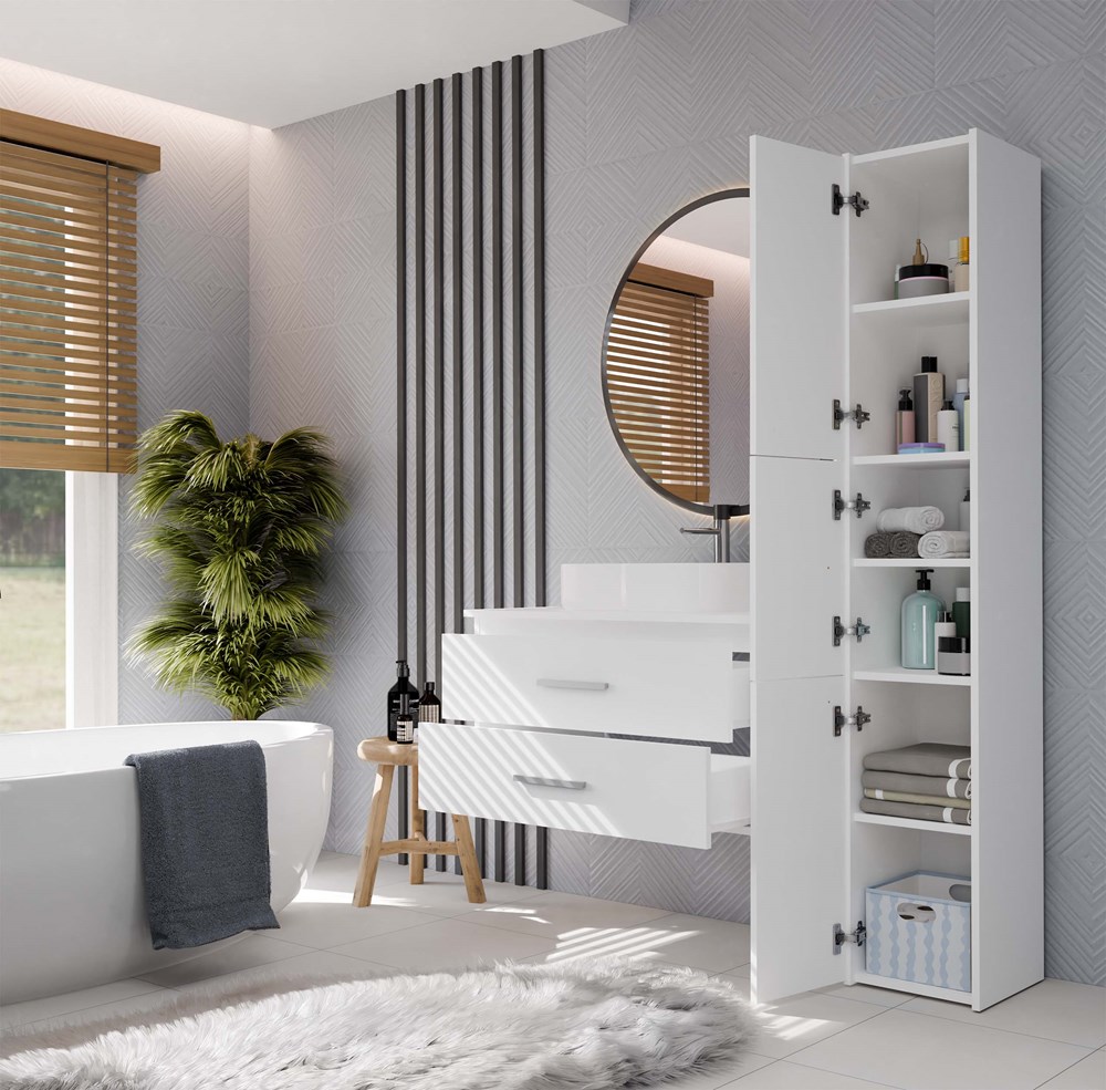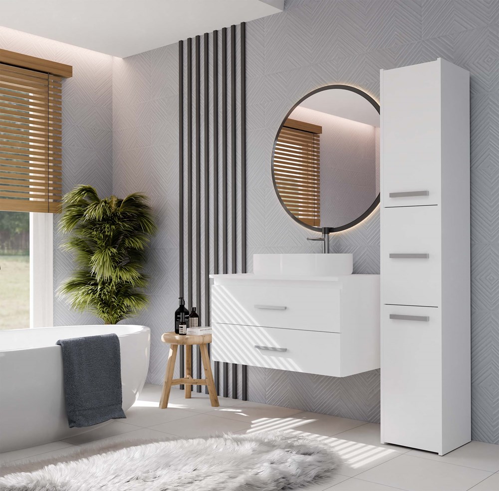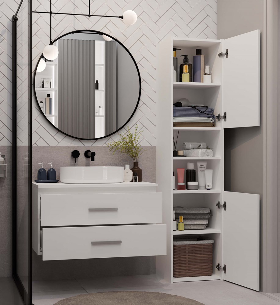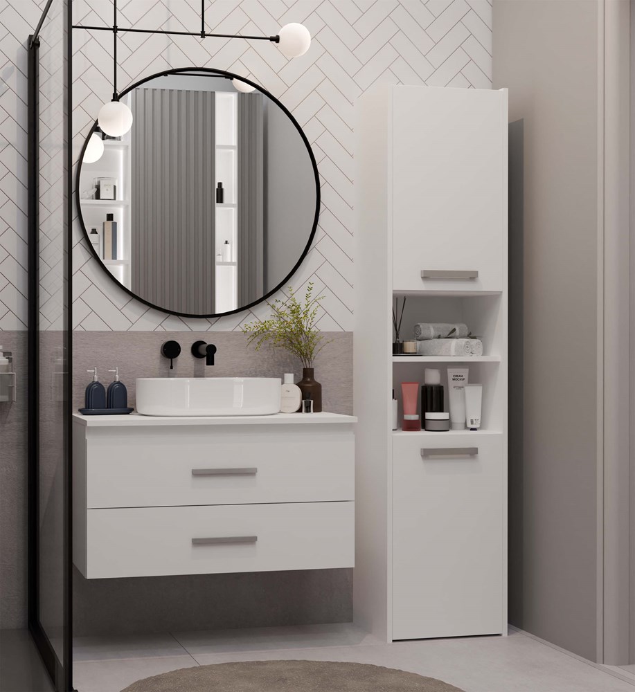 NEL 80 to praktyczna szafka łazienkowa, która doskonale sprawdzi się w nowoczesnych wnętrzach, zarówno tych średnich, jak i mniejszych.