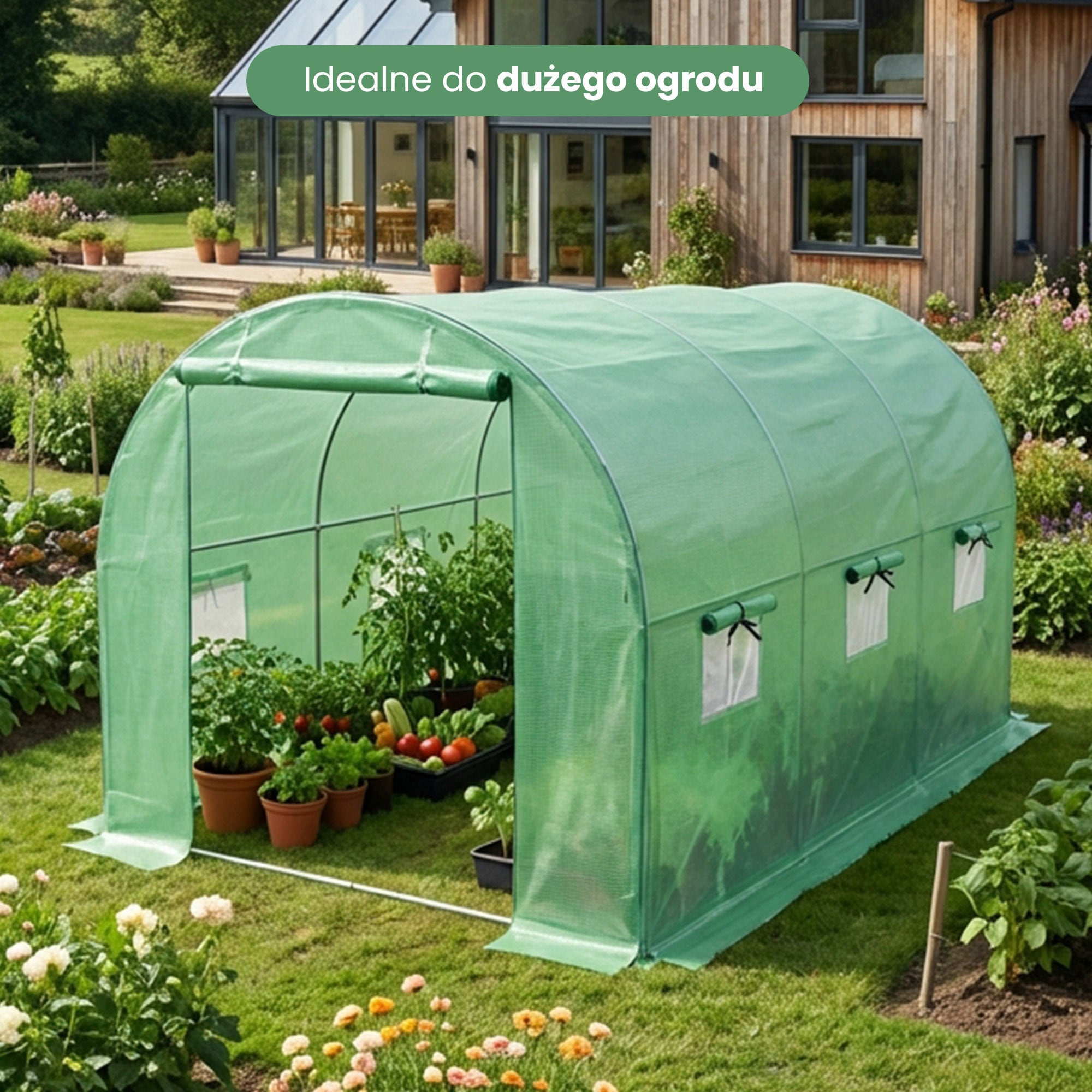 Szklarnia ogrodowa foliowa tunel 1 drzwi 6 okien Zielona 200x300x200 cm