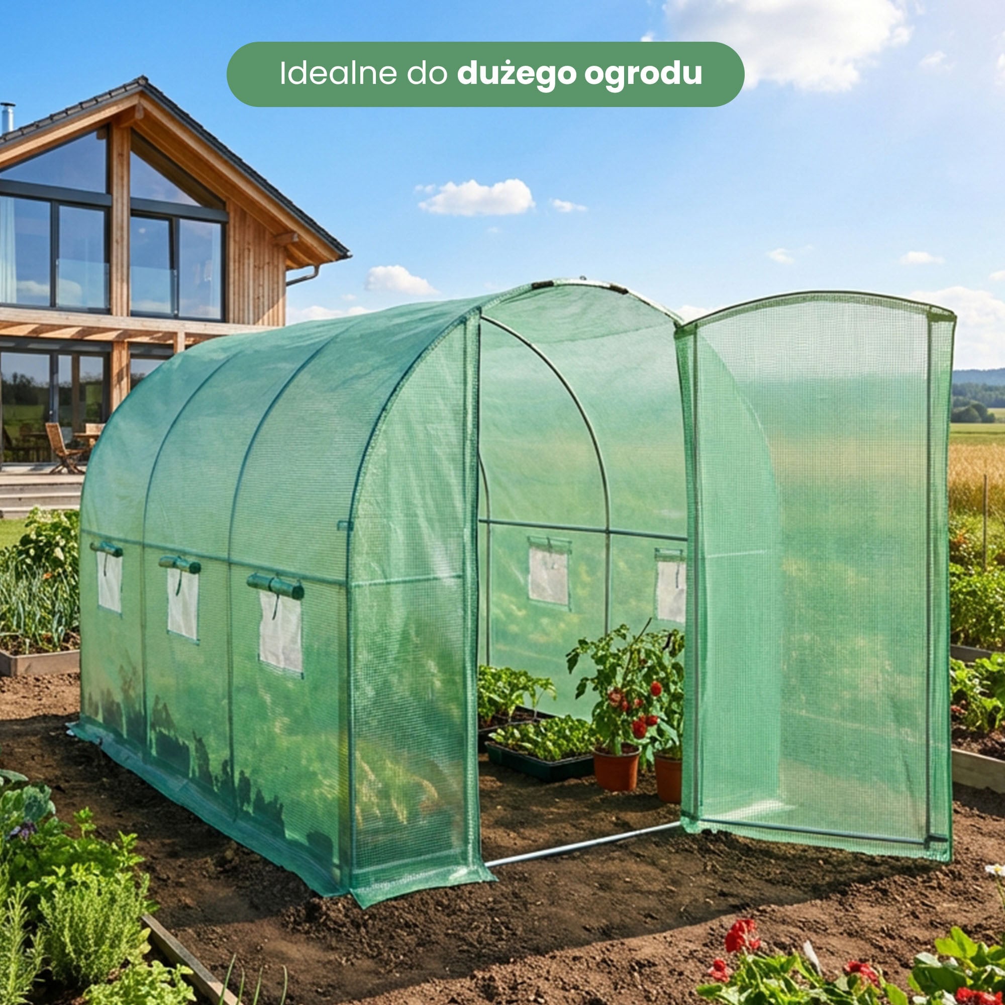 Ogrodowa szklarnia foliowa to praktyczne rozwiązanie dla osób, które chcą wydłużyć sezon upraw i zapewnić roślinom optymalne warunki wzrostu. Konstrukcja pokryta wytrzymałą folią chroni przed wiatrem, chłodem oraz nadmiernymi opadami, jednocześnie przepuszczając odpowiednią ilość światła. Tworzy stabilny mikroklimat sprzyjający kiełkowaniu, wzrostowi i dojrzewaniu warzyw, owoców oraz roślin ozdobnych. To wygodny sposób na zdrowsze, własnoręcznie uprawiane plony prosto z ogrodu.
