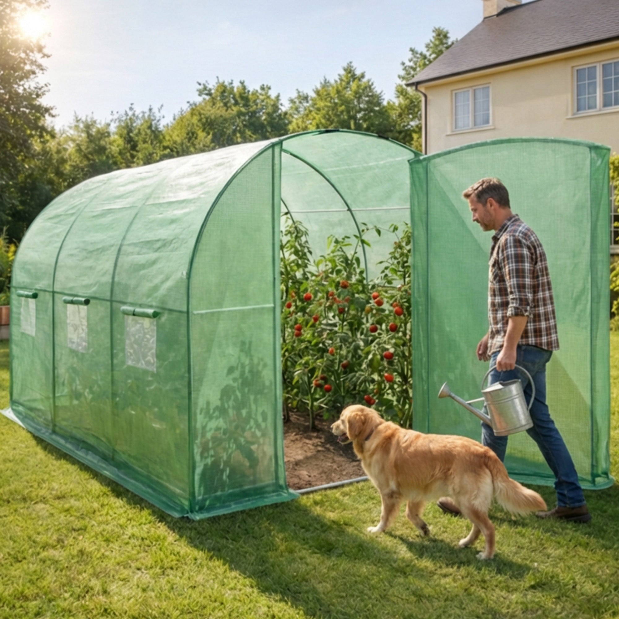 Szklarnia ogrodowa foliowa tunel z metalowymi drzwiami 6 okien Zielona 200x300x200 cm