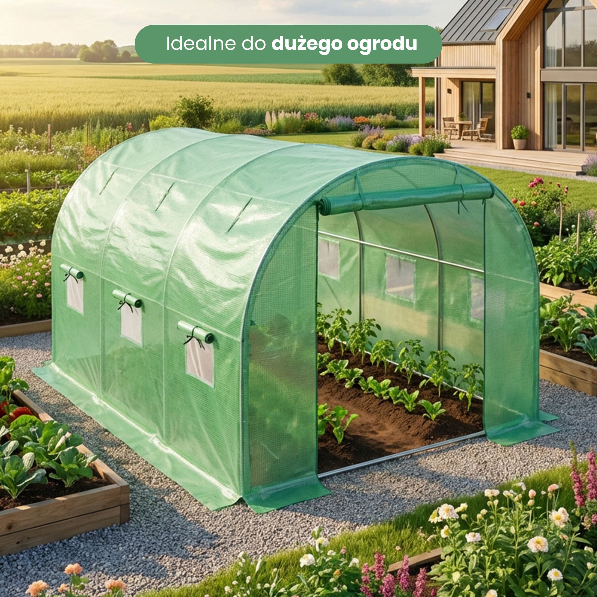Ogrodowa szklarnia foliowa to praktyczne rozwiązanie dla osób, które chcą wydłużyć sezon upraw i zapewnić roślinom optymalne warunki wzrostu. Konstrukcja pokryta wytrzymałą folią chroni przed wiatrem, chłodem oraz nadmiernymi opadami, jednocześnie przepuszczając odpowiednią ilość światła. Tworzy stabilny mikroklimat sprzyjający kiełkowaniu, wzrostowi i dojrzewaniu warzyw, owoców oraz roślin ozdobnych. To wygodny sposób na zdrowsze, własnoręcznie uprawiane plony prosto z ogrodu.