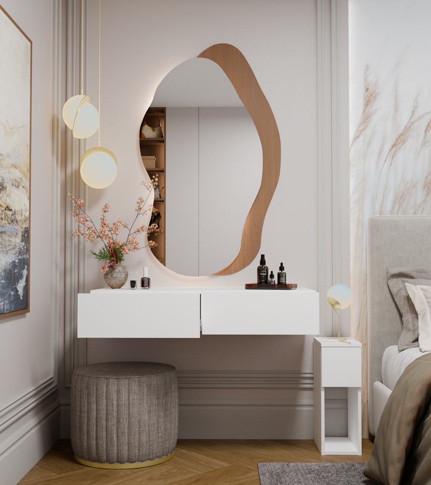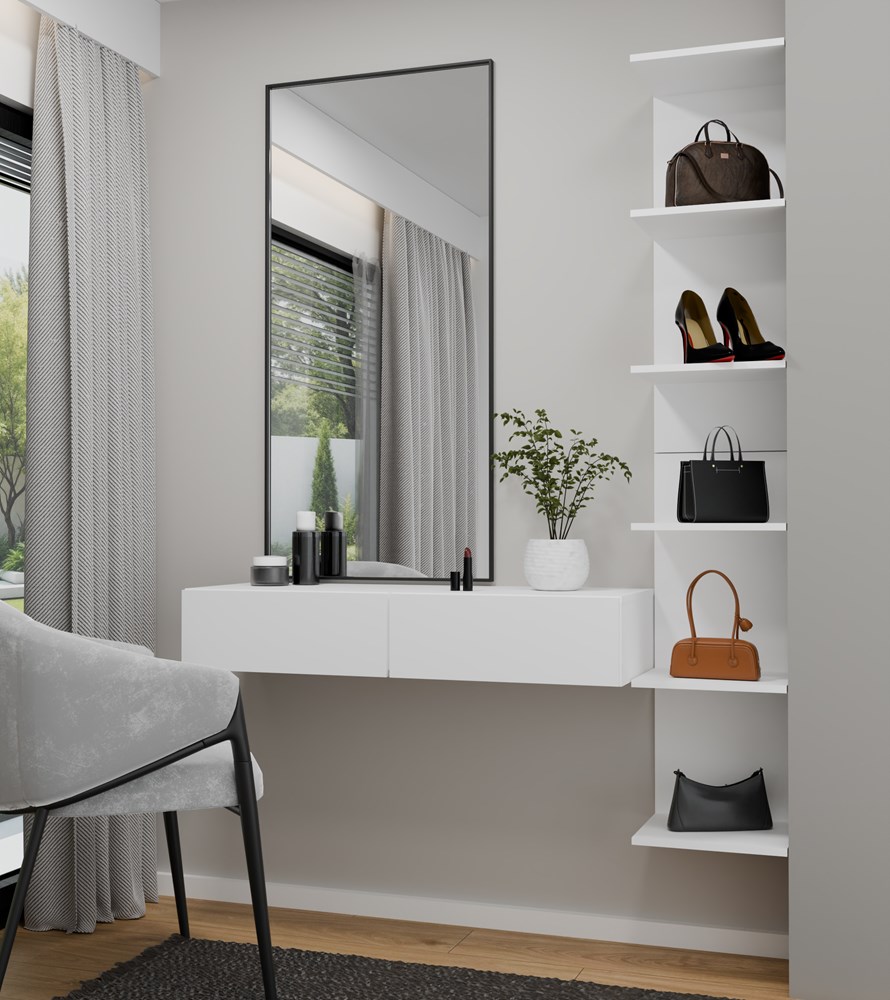 Szukasz praktycznego i stylowego rozwiązania do przechowywania kosmetyków lub dodatków? Toaletka wisząca MIKA w kolorze białym łączy minimalistyczną formę z funkcjonalnością – sprawdzi się doskonale w sypialni, garderobie czy łazience.