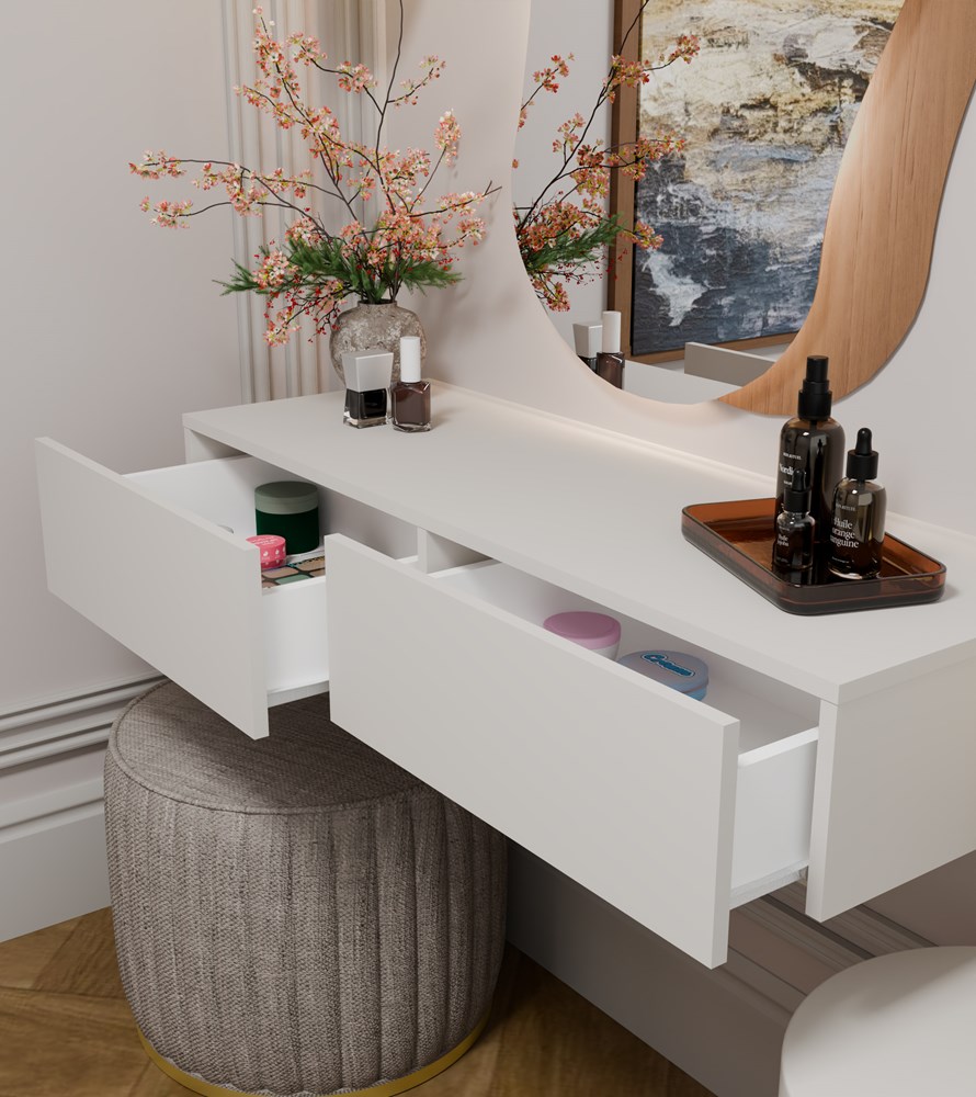 Toaletka Kosmetyczna Wisząca MIKA 110 Cm 2 Szuflady Do Sypialni KASZMIR Beż