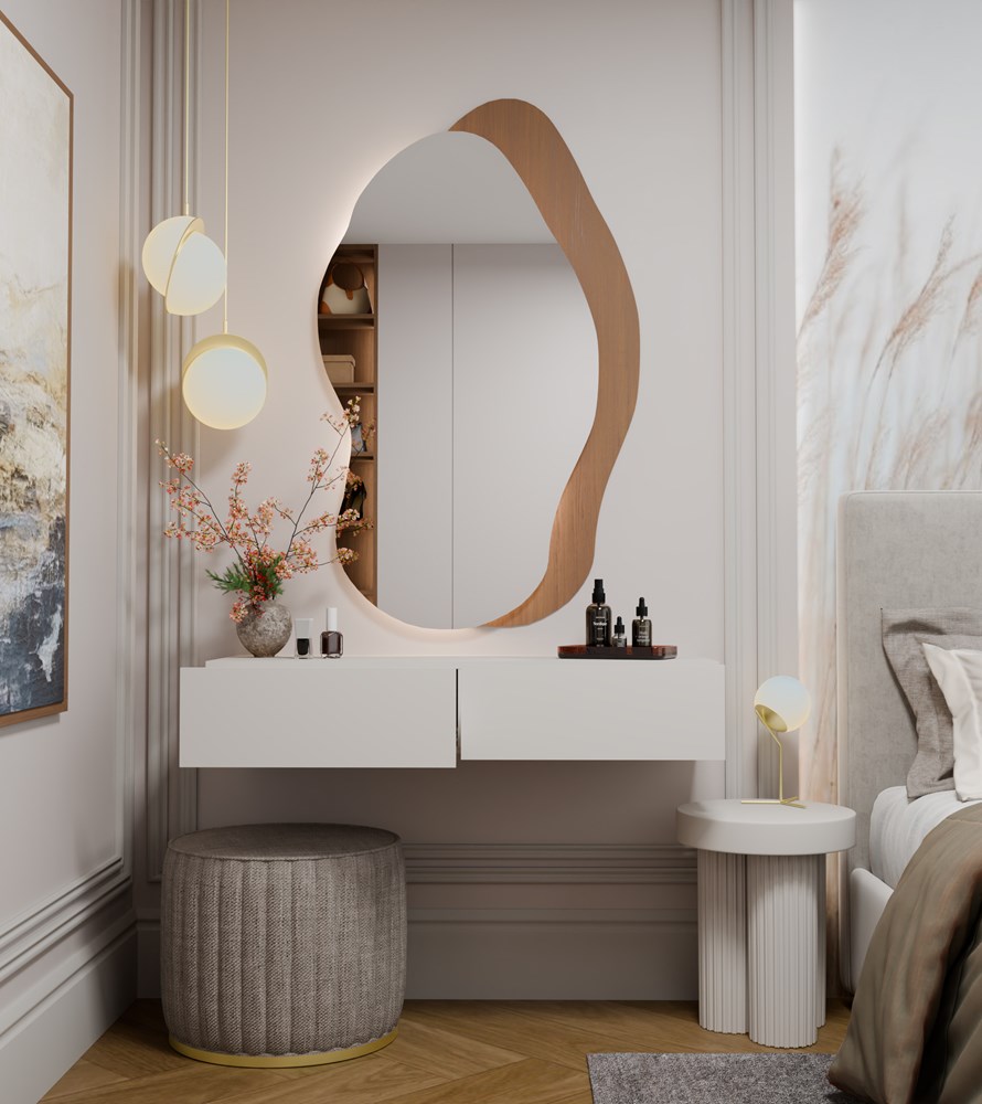 Szukasz praktycznego i stylowego rozwiązania do przechowywania kosmetyków lub dodatków? Toaletka wisząca MIKA w kolorze kaszmirowym łączy minimalistyczną formę z funkcjonalnością – sprawdzi się doskonale w sypialni, garderobie czy łazience.