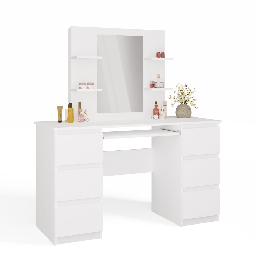 Toaletka Kosmetyczna Z Lustrem Do Makijażu Zestaw MARINA 4P + KUBA Biurko BIAŁA