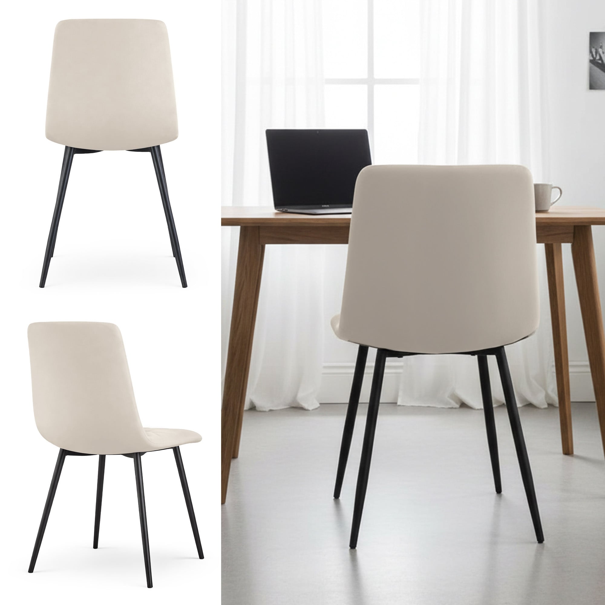 Welurowe krzesło tapicerowane pikowane Beżowe NERO Czarne nogi