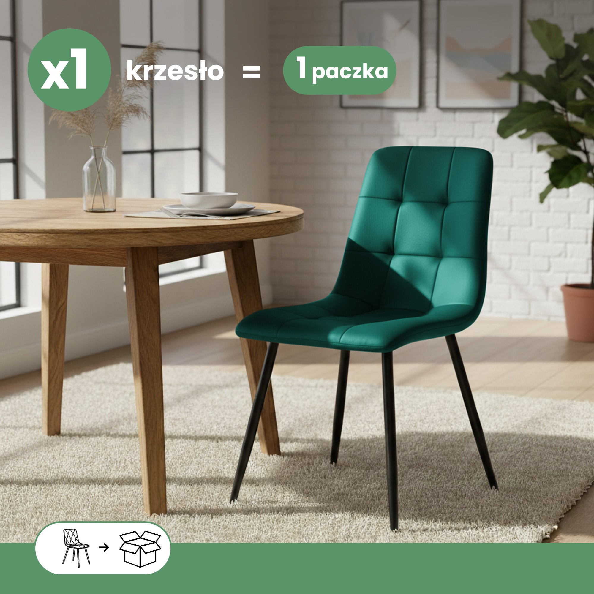 Welurowe krzesło tapicerowane pikowane Butelkowa Zieleń NERO Czarne nogi