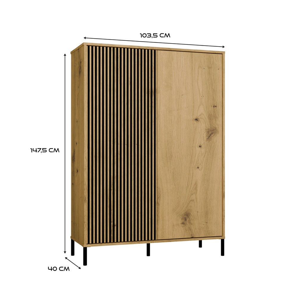 Witryna KAMARO 2DD SLIM/GŁADKI DĄB ARTISAN to połączenie estetyki i funkcjonalności, które doskonale odnajdzie się w salonie, pokoju gościnnym, sypialni czy gabinecie. Połączenie drzwi z gładkim frontem oraz drzwi z ryflowanym frontem przypominającym lamele dodaje charakteru, a system TIP-ON pozwala na wygodne użytkowanie bez uchwytów. Mebel zapewnia sporo miejsca do przechowywania, jednocześnie stanowiąc stylowy akcent w nowoczesnym wnętrzu.