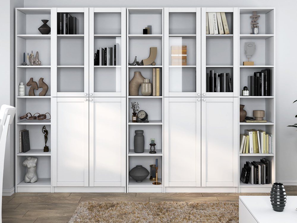 Klasyczna wysoka witryna / regał biurowy to doskonałe rozwiązanie do przechowywania książek, zabawek, segregatorów oraz materiałów firmowych.