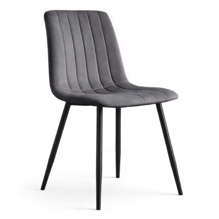 Welurowe krzesło tapicerowane pikowane Ciemny Grafit LIVO Czarne nogi