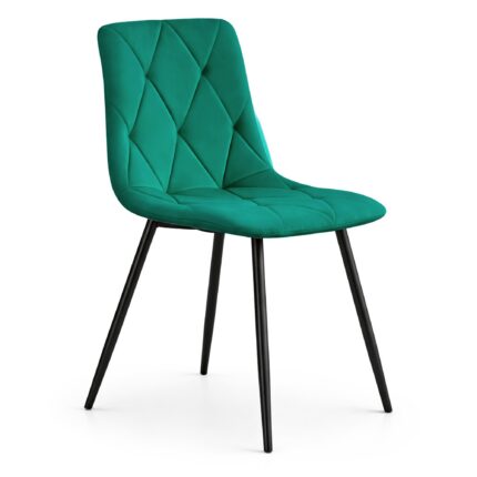Welurowe krzesło tapicerowane pikowane Butelkowa Zieleń LIVO Czarne nogi