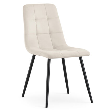 Welurowe krzesło tapicerowane pikowane Beżowe NERO Czarne nogi