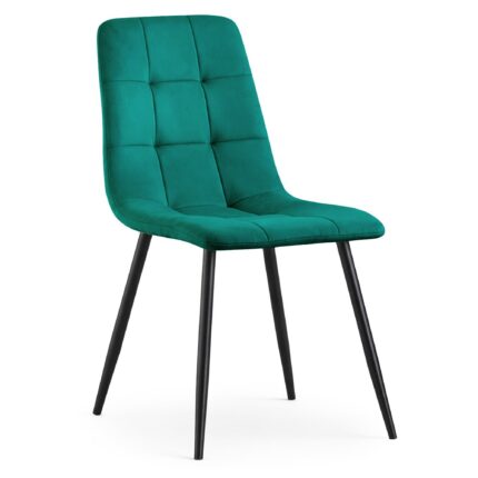 Welurowe krzesło tapicerowane pikowane Butelkowa Zieleń NERO Czarne nogi