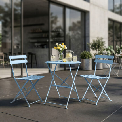 Zestaw mebli balkonowych ORION to niezawodny towarzysz relaksu na świeżym powietrzu. Dzięki solidnej metalowej konstrukcji w kolorze zielonym, ten zestaw