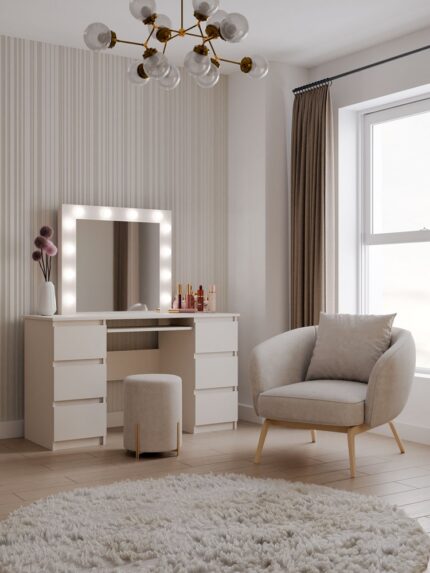 Zestaw mebli łazienkowych VAMI to kwintesencja nowoczesnego stylu. Dzięki otwartym półkom, szafki są lekkie wizualnie i perfekcyjnie wpisują się w najnowsze