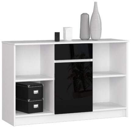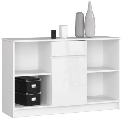 Biała komoda pochodząca z zestawu B-17, może służyć jako osobny, niezależny element umeblowania każdego pomieszczenia. Dzięki konstrukcji o charakterze modułowym