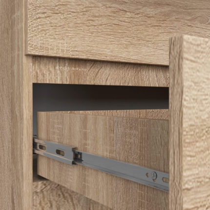 – Komoda wykonana z wysokogatunkowej płyty laminowanej 16mm odpornej na ścieranie, producent kronospan – Fronty szuflad wykonane z płyty laminowanej