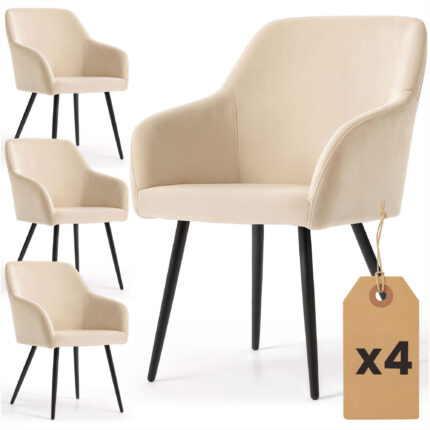 4x Welurowe krzesło tapicerowane gładkie Beżowe ESTELLE Czarne nogi