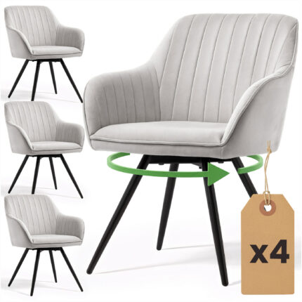 4x Welurowe krzesło obrotowe z przeszyciami Szare TURNO Czarne nogi