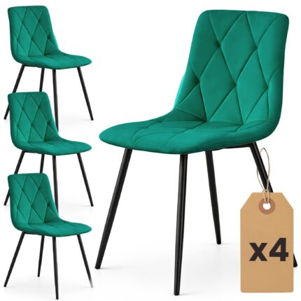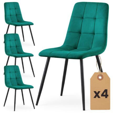 4x Welurowe krzesło tapicerowane pikowane Butelkowa Zieleń LIVO Czarne nogi