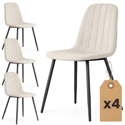 4x Welurowe krzesło tapicerowane pikowane Beżowe NERO Czarne nogi