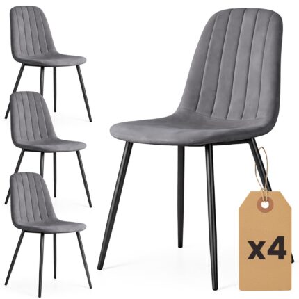 4x Welurowe krzesło tapicerowane pikowane Ciemny Grafit LIVO Czarne nogi